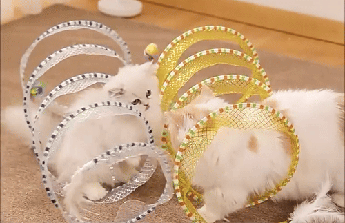 Although my cats were initially hesitant, they eventually warmed up to this toy, particularly enjoying the bell toys on the ends. Now, they use it as intended, running through it with enthusiasm.