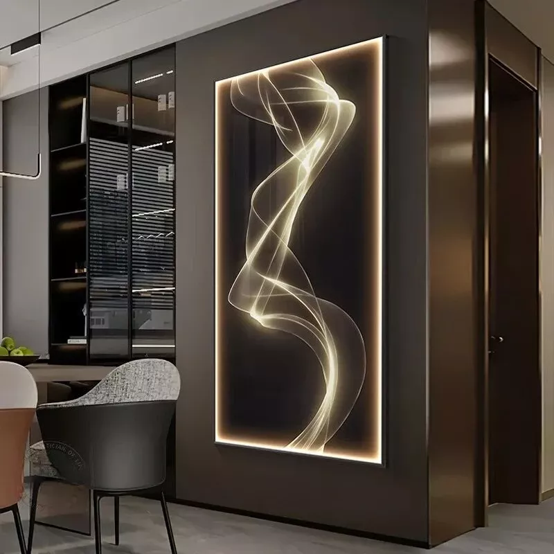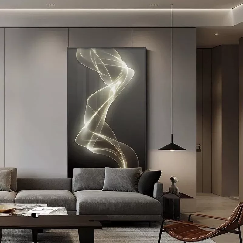 Our wall lamp boasts a sleek aluminum alloy frame encompassing a high-definition spray painted canvas that brings images to life. The A-grade crystal mirror is scratch-resistant and ensures the utmost clarity, while the integrated LED light strip casts a warm, inviting glow. Equipped with a remote control for convenience, the dimmable feature allows you to set the perfect mood for any occasion. This meticulously crafted piece, complete with a DMF environmental protection backplane, seamlessly blends with your decor to create a harmonious look.