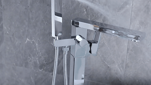 This floor-standing faucet is not only a functional addition but also an artistic statement. Ideal for modern, minimalist, or any contemporary bathroom decor, it stands out as a piece of art. Whether you are renovating or building a new bathroom, this faucet adds a touch of elegance and sophistication.