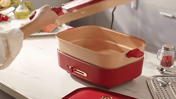 This cooker has utterly transformed my culinary practices, bringing a level of convenience and efficiency I never knew was possible! Its robust heating mechanism is a marvel, guaranteeing that every dish I prepare is cooked uniformly and swiftly, eliminating the all-too-common issue of unevenly cooked meals. What truly sets this appliance apart is the stepless temperature regulation, offering an unparalleled level of control that ensures I can achieve the perfect cooking conditions for a wide array of dishes, from delicate pancakes to robust stews. The non-stick coating on this cooker goes beyond mere convenience; it is a revolution in kitchen cleanup. Gone are the days of scrubbing and soaking pans. Now, a simple wipe is often all it takes to keep this cooker looking pristine. This feature alone has saved me countless hours and much effort. Moreover, the innovative design includes a foldable handle, a feature I cannot praise enough. It allows the cooker to snugly fit into my kitchen drawer, conserving valuable counter space that is often at a premium in modern kitchens. This thoughtful design aspect underscores the cooker's utility and practicality. The versatility of this cooker is remarkable. Whether I'm in the mood for a quick breakfast waffle that starts my day on a sweet note, or a comforting hot pot dinner that warms the soul, this cooker rises to the occasion every single time. Its ability to handle a diverse range of culinary tasks with such ease makes it an indispensable tool in my kitchen, transforming routine meal prep into an enjoyable and hassle-free experience.
